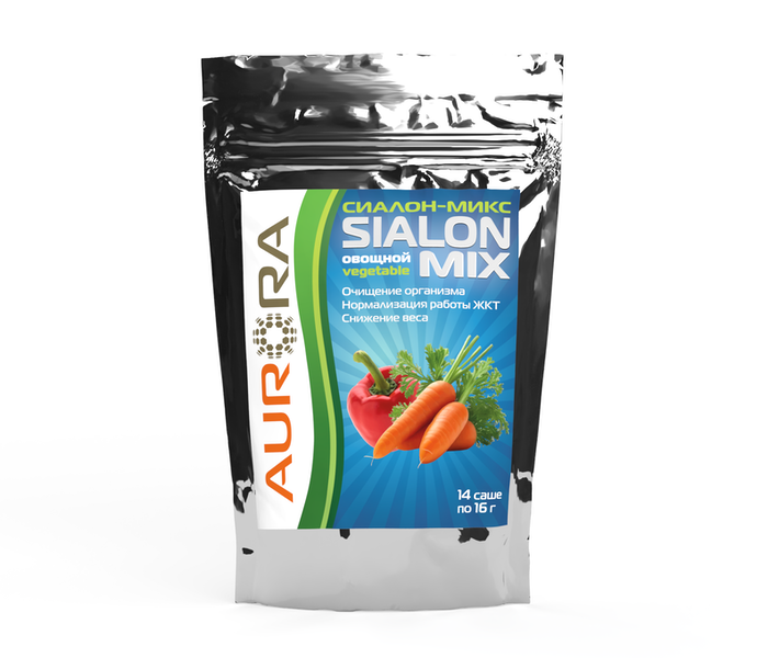 Сиалон-Микс овощной (Sialon-Mix vegetable) – способствует очищению организма, улучшает функционирование кишечника, хорошо утоляет чувство голода, способствует снижению веса. Входящие в состав диатомит и льняная мука обладает сильным адсорбирующим эффектом и могут поглощать и выводить из организма токсические вещества в количестве многократно превышающем свой собственный вес.